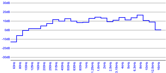 Courbe de réponse en fréquence mettant en évidence, la capacité des haut-parleurs à délivrer des sons graves, mediums et aigus.
