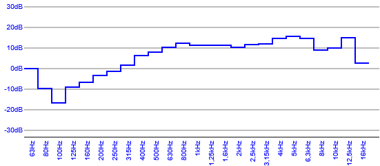 Courbe de réponse en fréquence mettant en évidence, la capacité des haut-parleurs à délivrer des sons graves, mediums et aigus.